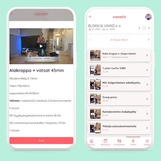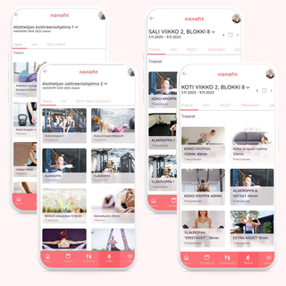 Voit tehdä kaikki kotitreenit ohjattuna tai itsenäisesti liikevideoilla. Saat valmiit, päivittyvät treeniohjemoinnit ja kehittävät treenit, joilla saat näkyviä tuloksia 2-3 treenillä viikossa. Lisäksi saat käyttöösi yli 130 ohjatun harjoituksen treenipankin.