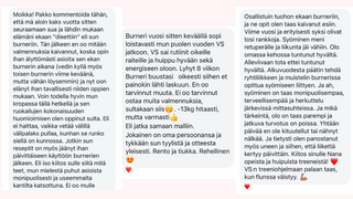 BURNERILLA onnistut ja saavutat tuloksia kestävällä pohjalla (yli 94% osallistujista ovat saaneet tuloksia valmennuksen menetelmillä). Saat tuloksia ilman kikkailuja tai huuhaata - tulostakuulla🤝.