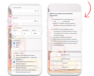 Tavoitteesi voi olla (voit vaihtaa tavoitetta koska tahansa):