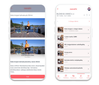 "Nanan vetämät treenivideot saa tekemään kotonakin täysillä ja motivaatio pysyy yllä ja tuloksia syntyy. Paino on pudonnut, lihaskunto super ja selkävaivat historiaa."